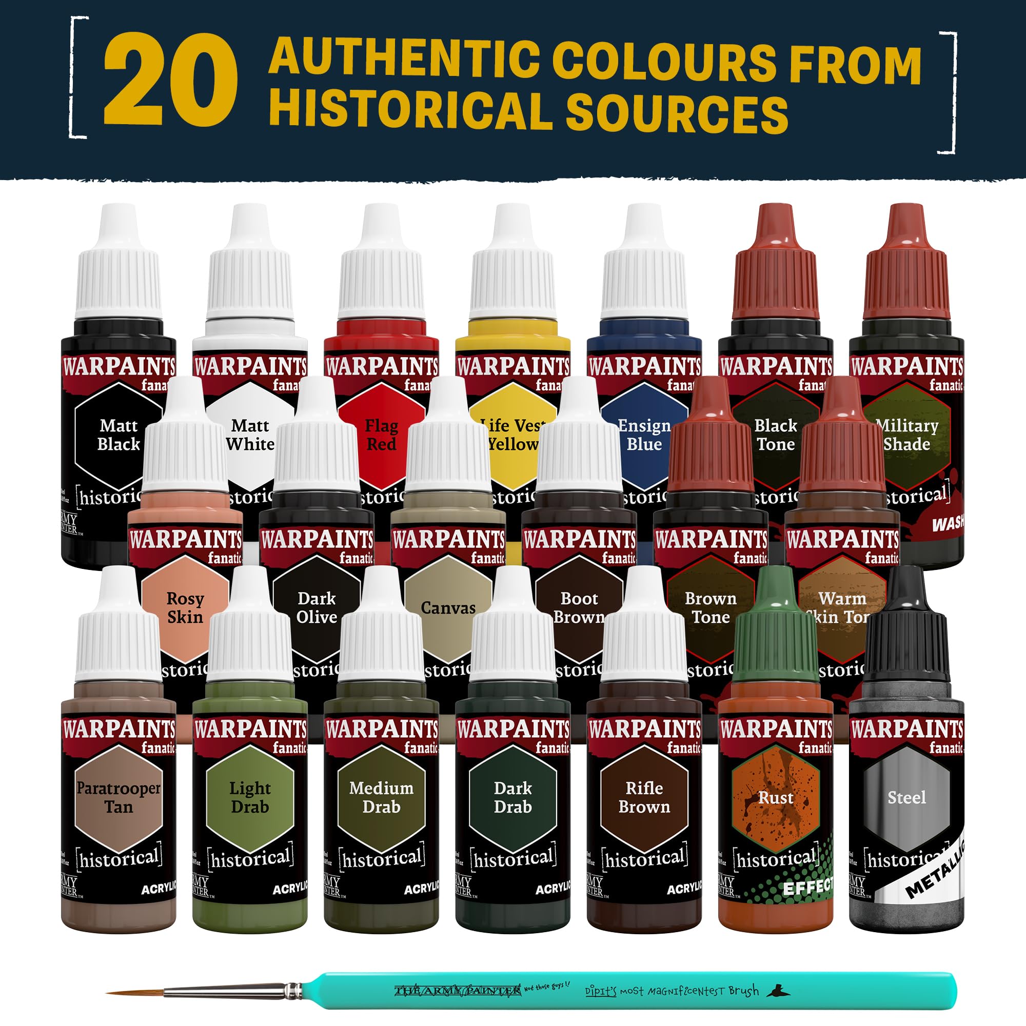 The Army Painter Historical: WWII American Paint Set Combo, 20 x 18 ml Warpaints Fanatic: 14 Acrylic, 4 Washes, 1 Effect, 1 Metallic & 1 Brush - Miniature Paint for U.S. Armed Forces in World War IIβ