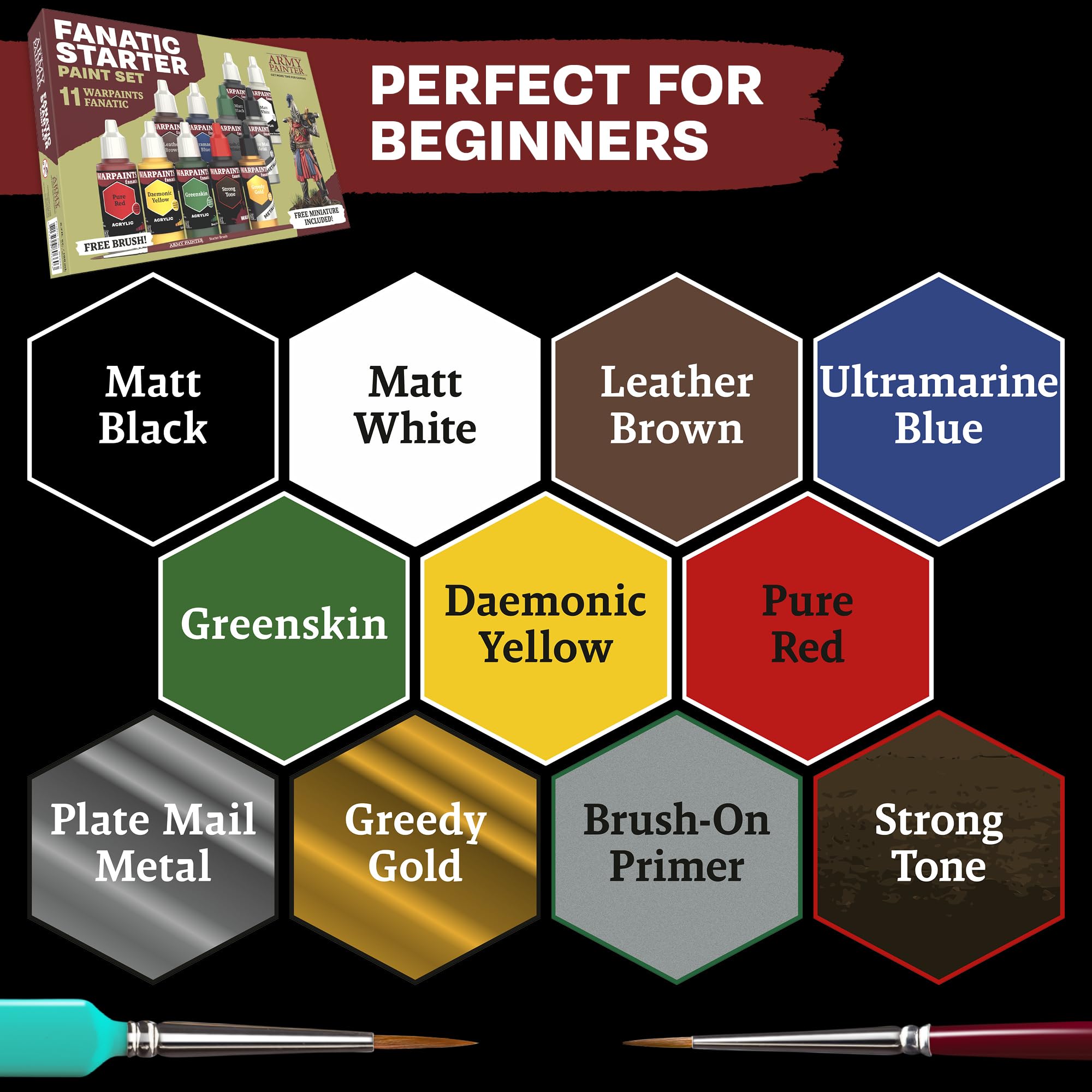 - 🚀 THE PERFECT STARTER SET - The Warpaints Fanatic Starter Paint Set Comes with Everything You Need to Get Started with Painting Any Wargaming System. It’s Ideal for Beginners as It Includes the Basic Items You Need in Your Hobby Painting Kit.