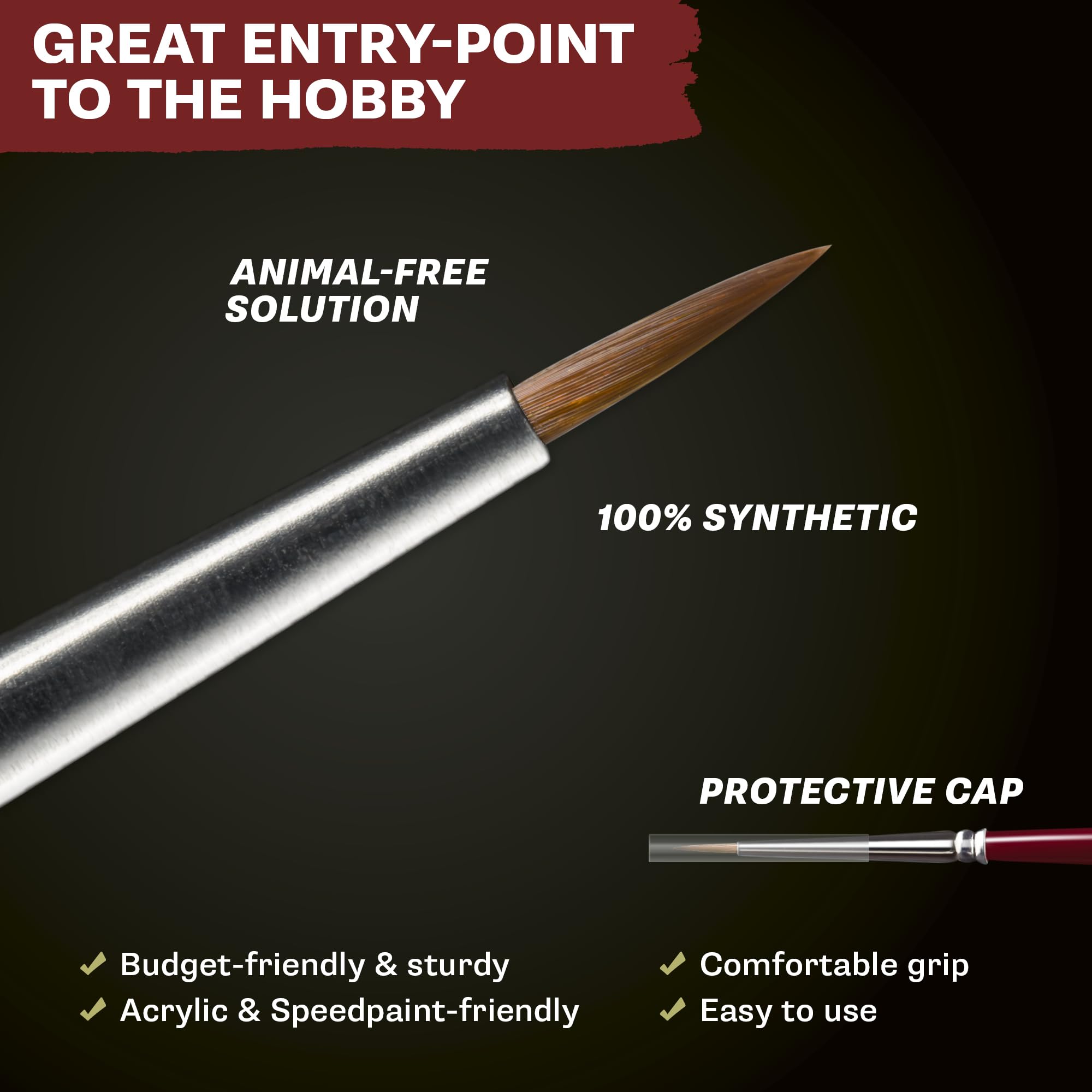 - 🖌️ The Hobby Brush Starter Set has everything you need to start or keep painting with precision. Packed with three versatile brushes each designed for a different stage of your miniature painting process - this set has you covered from basecoat to final highlight.