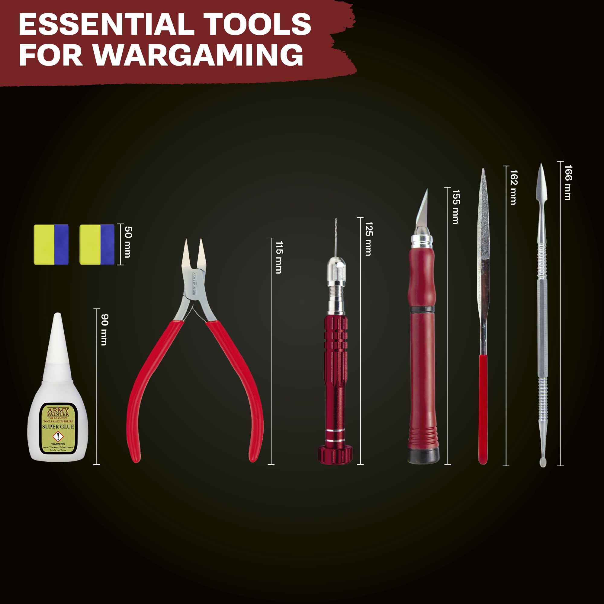 - This amazing set has been designed to give the wargamer a “one box fits all” tool kit. Includes all the basic tools you need to assemble any miniatures army. It also includes a free 5g Super Glue as well as a guide to tool safety and the Army Painter Technique Painting Guide.