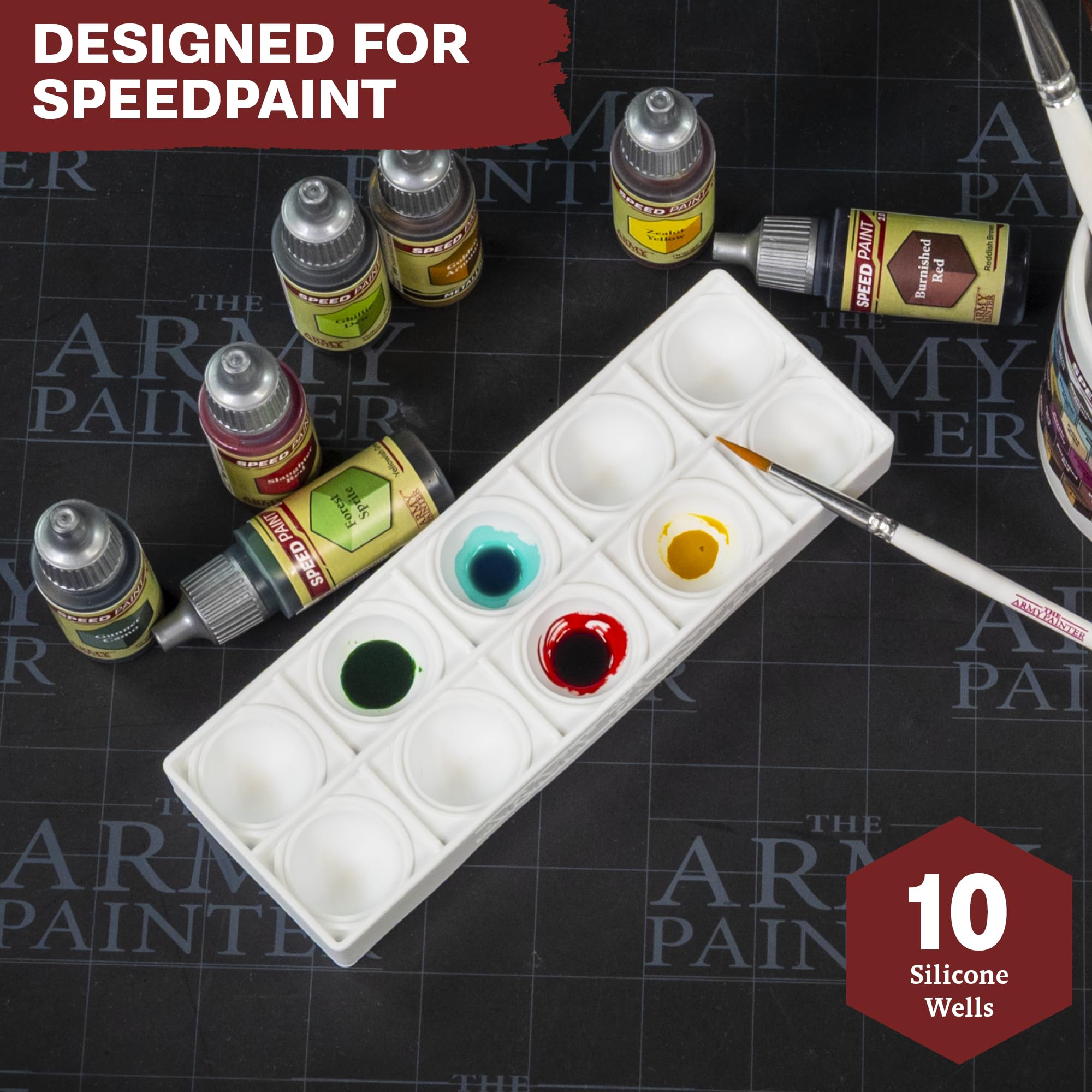 - 🎨 THE SPEED PALETTE is crafted from flexible silicone. It comes with 10 deep wells designed for your favourite paints (it especially works well with Speedpaints) and keeps them from drying out while you create. Cleanup is as quick as flexing and flicking, bringing a tactile sense of play to every session.